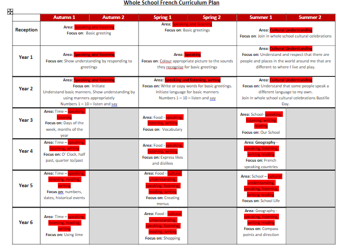 Assessment criteria has been developed, in line with national curriculum aims, to enable teachers to assess the progress of children in their language learning as they move through Key Stage 2, ensuring that children are supported and challenged as appropriate.